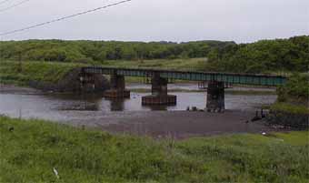 目指せ!廃線マニア−2− (’01.6.22更新) 上川、興部、斜里と続いた道東演奏旅行のついでに、6月20日紋別にある『オムサロ遺跡公園』を見てきました。実は去年もここに来たのですが、ちょうど興部から宿泊地の紋別に行く国道沿いにあるので寄りました。今回は2度目の訪問です。 オホーツク海に面したこの地区は旧国鉄の廃線の宝庫でもあります。名寄からオホーツク海沿岸の街、興部に抜ける国道沿いには旧名寄線があるし、興部から北にはオホーツク海に沿った国道238号線と平行して興浜南線、サロマ湖を周回する形で湧毛線、紋別から内陸の滝上までは渚滑線、と枚挙にいと間がありません。現在は石北線を残すのみで昭和とともにそれらの鉄道は全て姿を消しました。 当初はオムサロ遺蹟の写真をちょいと撮って引き返すつもりだったのですが、欲が出て名寄線跡も見に行きました。ここは線路跡はほとんど農地などに転用されて見分けがつかない状態になっていました。興部駅だった場所が「鉄道記念館」になって線路の一部が保存されていました。昔駅だった場所というのは言うまでもなくその街の中心なわけで、道路や商店街なども駅を中心にして配置されています。駅がなくなっていても「ああ、この場所は昔駅だったんだな」とすぐわかります。そこが訪れる人も決して多いとはいえない記念館などになっていると少し切ない気持ちになります。 さて、オホーツク海沿岸に添うように走っていた名寄本線跡は廃線マニアを喜ばせるに充分な現役当時の残光をとどめていました。ただし国道と平行しているため線路跡を発見する楽しみはありません(笑)。鉄橋などもそのままで朽ちるに任せて放置されています。(※写真1) 興部から南下してあと10分ほどで紋別市内に入ろうかという所にオムサロ遺蹟はあります。国道から100mほど内陸に入って名寄線跡を改装した遊歩道を抜け、小高い丘の上に遺蹟公園があります。オムサロ遺蹟とはオホーツク文化時代の遺蹟で今から1000〜1500年前にオホーツク沿岸に起った北方系の続縄文文化時代の集落跡です。200ほどの竪穴式住居跡が埋もれずに残っていて、その一部が公園になっています。高床式食料貯蔵庫や住居が何棟か復元されています(※写真2)。 本州では奈良時代を迎えている頃ですが、千島、樺太、北海道の北辺ではまだ縄文文化なわけですね。縄文人も実のなる木の大量栽培や広域貿易、今で言う都市があり都市としての機能もかなり備えていたことが、最近三内丸山遺蹟の発掘などで明らかになっていますが、オムサロ遺蹟も大集落ですからこのあたりの首都だったのだろうか・・、などと色々想像力を掻き立てられて散策していて飽きません。 実はここの遺蹟、飽きないことが他にもあります。実はこっちの方が廃線マニア的にはメインだったりするのですが、旧日本軍の塹壕が遺蹟公園の中心にずーっと掘られています。この辺は太平洋戦争末期にアメリカ軍の上陸に備えてトーチカやら砲台やらが沢山作られていたのです。網走市内にもいくつかトーチカが残っていて、オムサロ遺蹟の向かいにある原生花園にもトーチカがあったりします。 さらに、旧名寄線に添って存在する遺蹟だけのことはあって、遺蹟公園内の遊歩道や階段のステップなどに、これでもか、というくらいに線路のまくら木がふんだんに使われています。(※写真3) 縄文時代から太平洋戦争、旧国鉄と一粒で3度おいしいオムサロ遺蹟公園。公園内は無人ですが綺麗に整備されています。森の中の集落はひんやりとした静寂がただよっています。木々の間からオホーツク海が一望できてとてもいい場所でした。