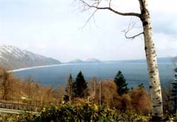 支笏湖結氷(’01.4.14更新) 今日支笏湖に行ってきました。知らない方のために解説すると、支笏湖とは札幌から南西に20Kmほど行ったところにある風光明媚な湖です。周囲42km、平均水温3.6度と日本最北にして最も冷たい不凍湖。最大深度360.1m。戸沢湖に次いで第2位。国立公園に指定されているので一部を除き観光地化もほとんどされておらずとても綺麗です。東京から友人などが遊びに来た時は迷わずこの湖のほとりにある丸駒温泉に連れていきます。湖の岸にあるここの露天風呂から見た景色は絶景です。 さて、今日支笏湖に行ったのは理由があって、今年の寒い冬のせいで不凍湖のはずの支笏湖があろうことか全面結氷したのです。テレビなどでも散々やっていたので北海道在住の方は皆ご存じかと思います。湖が凍ること自体は珍しいことでもないのでわざわざ見に行こうとは思わなかったのですが、かりかりが5日ほど前に支笏湖に行って4月も半ばだというのにまだ20cmの厚さの氷に被われた湖面を見て「信じられないほど綺麗だった。今年見ないと次は23年後だよ。一生後悔するよ」と言うのと、新聞やTVなどでも氷が溶けはじめた様子が報じられていたのもあって見に行くことにしました。 かりかりから話しを聞いた後3日間は仕事があって行けなかったのですが、急に暖かくなって札幌の気温も20度近くまで上がっていました。たのむから溶けないで・・、と祈りながら3日間を過ごしやっと今日家族と見に行ったのですが、見事に溶けてました(`口´;)。それでも風下の岸に僅かばかり残った氷は粉々に砕けているものの、側によると波に揺られてシャリシャリときれいな音をたてています。次に見る時は58歳か・・・ふう。湖畔にカメラマンが沢山陣取っていました。彼らに交じって写真撮りました。