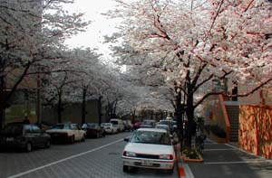 ホールのあるアークヒルズ脇の桜並木。既に満開に近かった。