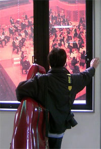 遅刻してきたチェロ奏者?。既に演奏会は始まっていた??(答えは写真をクリック)