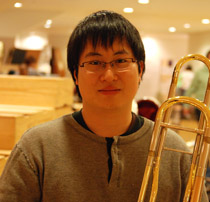 5月1日付けでトロンボーン(副首席)に新入団員が入りました。山下友輔(ゆうすけ)さんです。1984年生れ。鹿児島出身。小学校の吹奏楽部で好きなトロンボーンを始め、高校は指揮者の下野竜也さんと同じ鹿児島県立甲南高等学校。その後、東京芸大に進み、卒業とほぼ同時に札響入団となりました。日本トロンボーンコンクール第1位など受賞歴多数。札響へは昨年からエキストラで出演しだし、招待オーディション(一般公募によらず、音楽監督や楽員などから推薦のあった候補者をオーディションにより選出すること)によって入団となりました。札響とはいわば相思相愛といえます。