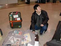 10月20日、21日 ロンドンのホテルから無事インターネットに繋ぐことができました。はっきり言って楽勝です。20日は千歳から成田。夕方成田に着いて成田の東急インに泊まりました。翌朝9:30に全員バスで成田空港に向かいました。 バスで成田に着いたら、前日渡された全行程の飛行機チケットとパスポート、そしてワーキングビザを持って各自出国の手続きなどをします。 今回の英国ツアーの取材をしているUHBの撮影クルー。特別演奏会や楽員向けの英国公演に向けた説明会など全てこの方たちがカメラで撮っていました。旅行中もづっと同行するそうです。ちょっとした引っ越しのような荷物を3人で運んで更に撮影して、とプロという感じです。 飛行機の登場手続きは各自行います。札響を団体扱いで乗っていますが、その中の席は登場手続き順で決まります。 ふと見るとスーツケースを広げて焦りまくっている某コンマスが・・・。お金をどこにしまったか分からなくなった模様・・(爆) 英国まで12時間、機内は禁煙ですので吸いだめです。札響の喫煙率は非常に高いので喫煙場は札響楽員だらけでした。 私たちが乗るJAL401便。 この方がプロ中のプロ、読売旅行の西山氏です。今回の札響ツアーの仕切りの責任者です。N響、読響、日フィルなど日本のプロオケの海外ツアーといえば西山氏が仕切っているという人です。まさに至れり尽くせり。「ウゲッとなるほど今煙草を吸っておくといいです」とご教授いただきました。 待合室での風景。バイオリンの三原さんがUHBスタッフのカメラを借りてカメラマンになりきっている図。このテレビカメラは10kgあるそうです。 いよいよ搭乗。UHBの番組が放送された時はこれと全く同じアングルの映像があるかも。 機内での風景。 同じく機内での風景。客室の一番後ろのこのブロックが「札響ご一行様」の席でした。 機内からみたシベリア。既に雪と氷におおわれて非常に綺麗であった。しかし”ソ連”上空を日航機が飛んでしかも写真撮り放題とは・・・、ちょっと前には考えられませんでしたね。 英国到着。入国手続きは団体というせいもあって特に厳しい印象は受けなかった。12時間ぶりの煙草を吸っているところ。後ろに移っているバスに乗ってホテルに向かう。 これがロンドンで泊まるNOVOTELホテル。ハンマースミスというロンドン中心街から地下鉄で5駅ほど西にいったところにある。駅ビルにはいろいろテナントが入っているがさほど賑やかな場所ではない。東京で言えば中野か荻窪といったところか・・・。