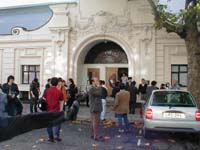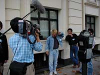 今日は明日から始まる演奏会のための全体練習の日です。練習は午後1時からBBCオーケストラの練習場であるBBC MAIDA VALE STUDIOで行われます。午前中はオフですのでその時間を利用してアンティーク屋を見に行くことになりました。 ロンドン市内に有名なアンティーク市はいろいろとガイドブックに載っているのですが、フリーマーケットのような形式で週末しかやっていないところが多く、今回はロンドンに住んでいる私の大学時代の後輩に電話で聞いてみてそこに行くことにしました。 地下鉄に乗って目的の駅に着いたあと迷いまくっている図。 道行く人に聞いたりしてやっと目的のアルフィーズ・アンティーク・ロードという所につきました。写真はアンティーク屋ばかり入った三階建の古いビルの中の1軒。古い銀の携帯灰皿を買った店で撮った記念写真。 そんなこんなで再び地下鉄に乗って練習場のあるMAIDA VALEに着きました。BBCスタジオの玄関から撮った向かい側の住宅。閑静な住宅街にあります。普通の住宅が皆写真のような作りで、街並みを作るというのはこういうことを言うのか・・、と思わされます。 BBCスタジオの社員食堂で記念写真。生協式のトレーに乗せていって最後にお金を払うスタイルでした。たいしたもの乗せてないのにあっという間に1,000円を越えてしまいます。やはりこの国の物価は高い。平ぺったいポテトフライに煮込みシチューをかけたもの、インゲンの煮物。小さめのパン、コーヒー、ミネラルウォーターで5.8ポンド(1,050円)でした。 BBC交響楽団の練習場にて英国での初の音だしをする札響。写真はリハーサル直前のもの。この練習場はBBC響が普段練習に使っているのですが、彼らがマカオなどの演奏旅行に行っているため借りることができたそうです。BBC響のスタジオ録音にも使われているそうです。とても良い響きとういうか日本にはちょっと無い感じの豊かな響きの練習場でした。 この練習場の前に停めてあった車に付けられていた駐車違反車用タイヤ止め。パーキングメーターの大幅な期限切れのようでした。 休憩時間のマエストロ尾高。尾高さんは今回の演奏旅行では成田からずっと一緒です。成田空港や機内ではまるで自宅の居間にいるがごとくのくつろぎ方で、旅慣れたとはこうしたもんか、と思わせてくれました。いつもどおり良い雰囲気の練習がここBBCスタジオでも行われました。 BBCスタジオの玄関。休憩時間に煙草を吸うために外にでた楽員たち。館内は禁煙です。 休憩時間にUHBの取材を受けるコントラバスの大沢さん。このあと私も取材を受けました。写真を撮っていると「あのホームページを作っている荒木さんですか?」と言われました。「まあね・・」と答えたかったのですが。「いや、お恥ずかしい・・」と謙遜謙遜・・。(笑)。送信している所を取材撮らせてくれとのご所望です。いや、まいったな・・、がはははは。 練習後はロンドン在住の友人と飲みに行きます。あの有名なビクトリア駅で待ち合わせ。あまりに素晴らしいなので写真を撮っていると、セキュリティーのおじさんが寄ってきて注意されました。構内で人を写すのはいいけど、駅自体を写すのは禁止です。だそうです。変な規則・・・。 地元民に人気のパブで飲みました。古い建物のとっても雰囲気のあるパブでした。ギネスビールと日替わりお薦め地ビールなどを飲みました。別れ際に玄関で記念写真。 ウエストミンスター駅までほろ酔いで歩きました。途中ライトアップされたビックベンや国会議事堂は素晴らしかったです。絵葉書で見たとおりでした(笑) |