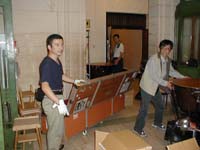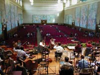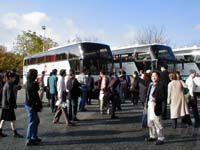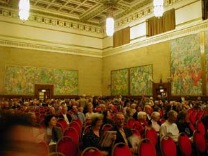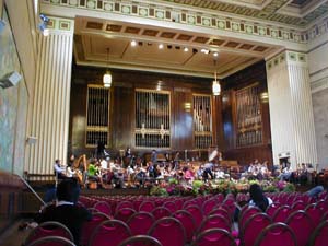 今日は今回の旅行の中でもっともハードと恐れられていた日です。ロンドンからバスでスォンジーに向い演奏会、そして当地でのウエルカムパーティーです。バスでの移動距離は3時間弱の予定だったのですが、渋滞で実際は4時間かかりました。途中から遠浅とういうか干潟のような海沿いの風景になり、海と反対側はなだらかな丘が続いています。道東の風景に良くにていました。上の写真は途中休憩によったパーキングエリアで撮ったバスの写真です。 パーキングエリアは広くて綺麗でした。ファーストフードが入っていました。写真はバイオリンの三原さんとコントラバスの藤沢さん。 ホテルの窓から見たスォンジジーの街。海沿いの街です。北海道で言えば釧路を連想するようなたたずまいです。と言ってもさすが英国だけあってまちなかにいきなり廃墟になった古城があったり、超古い教会があったりなかなか歴史を感じさせてくれます。バスがホテルに着いたころからすさまじい雨に襲われました。普段から天気は悪く雨が多いそうですが、今日のような雨は珍しいとのこと。ちなみにこれを書いている夜中の12時30分、このロータリーに珍走団がいてうるさいです。やはりどの国にもいるのか・・・・、 荷物を置いて各自昼ご飯を食べると再びバスでホールに向かいました。ちなみに昼はホテルの向いにあった2階建スーパーに入っていたレストランでフィッシュアンドチップスを食べました。すごく油っぽかったです。 上の写真はホールの外観です。この街にこんなイケてるホール?と思うほど荘厳な外観です。 ホールのロビーに貼ってあった札響のポスター。このポスターはあちらこちらで目にします。かなり宣伝が行き届いているみたいです。 超イケてるホールでリハーサルに臨む札響。古くてそんなに大きくはないのですが、伝統と格式と地元に愛され大切に育てられてきたという雰囲気が柱の一本一本に染みこんでいます。尾高さんからリハーサルの時に聞いた話しですが、このホールはとても音響がよくBBCウェルズ響などのCD録音もよく行っているそうです。 舞台上から見た客席。キャパは1100です。雛壇が高くてパーカッションの席は普通の住居の2階くらいの高さになります。 リハーサル前の木管セクション。 今回の旅行には医者が同行していますのでとても安心です。写真の女性は小林淳子医師。先生も当ホームページをご存じだったとのこと(^^)。旅行中に一回くらい病気になってみるのもいいかも(笑) 開演15分前の客席。当然ながらみんな外人(笑)。尾高さんのお話どおりお年寄りが多いです。演奏会中の写真をお見せできないのが残念。弾いているもので・・。そのうち事務局ホームページやUHBのテレビでご覧になれると思います。 今日のプログラムは、シベリウス/フィンランでィア、バイオリン協奏曲、マーラー/交響曲第4番でした。ホールは予想通りとても良い響きでした。グワーンとヘビーな音で柔らかくて。日本のホールにはちょっとない音です。演奏が終わるたびに物凄い拍手と足踏みでした。お客さんが皆笑顔なのがステージの上からだとよくわかります。とても暖かい聴衆でした。これが話にきくヨーロッパの聴衆というやつか・・、と思いました。 スォンジーは毎年やっている音楽祭の最終日で、札響の公演に合せてわざわざ音楽祭の日程を今年だけ変えてくれたそうです。1100人のホールは超満員でした。音楽祭期間中にスォンジーを訪れたデトロイト響やBBC響、その他英国内オケや室内楽などを押さえ、札響が一番客が入ったそうです。 ウエルカムパーティーで尾高さんと真貝さんと私で記念写真。尾高さんがおちゃめな事をしています(笑)。パーティーはホールの建物にある広間で行われたのですが、身動きできないほど盛況でした。地元の方たちが料理を持って団員たちに振る舞ってくれました。場内が混んでいて廊下に出てビールなどを飲んでいる団員たちに「あなたたちのためのパーティーだから楽しんでんね」などと言いながら沢山のお客さんが料理の皿を運んでくれたりしました。とても暖かい人たちでした。これが噂に聞く欧州の聴衆か・・・。恐るべし。 撤収に勤しむ札響裏方の勇姿。皆がパーティーに出ている間に本当にご苦労様です。地元のスタッフを指示しながら作業する姿はとても頼もしかったです。