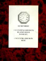 同じくレストランで食事中のステージスタッフたち。夜はミーティングや撤収などで忙しく、この旅行で外食はこれが初めてだそうです。ご苦労様です。これは余談ですが、画面手前のライブラリアンの田中さんは私を同じ高校の同期生。奥のステマネの工藤さんもおなじ年で学校は違いますが、東京で同じアマオケで弾いていた事があります。彼ら二人も高校時代から親交があったそうです。「まさか同じ職場で働くことになるとはね〜」というのが僕たちの口癖。 サマータイムが今日で終わります。「時計の針を一時間戻してください」というはり紙がホテルなどいろいろなところに貼っています。今日は一時間余計に眠れるというわけか・・・・。それではおやすみなさい。