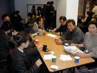 リハーサルが終わって本番までの時間を過ごす楽員。このホールは客席はひろかったのですが、舞台裏や楽屋が異様に狭いです。しかもトイレが一人用のが一つしかなくて閉口しました。バックステージが狭いというのは演奏者にとって非常にストレスです。ホールを設計する人には是非考えてほしい要素ですね。