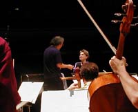 マーラーのリハーサル直後のソプラノのレベッカ・エバンスさん、とても美しい人です。マーラーの後も聴衆と楽員からも大きな拍手があがりました。 今日はお客さんの入りは今ひとつといったとことでしたが、反応は上々だったのではないでしょうか。リハーサルの時に尾高さんが「ロンドンの聴衆は冷たいといいますが、そんなことはないです」と言っていましたが、バーミンガムやスオンジーのような”熱烈歓迎”とはいかないまでも、充分手応えのある反応だっと思います。