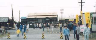 全席指定で乗ることもでき、留萌駅で駄目元で乗車券があるか聞いてみたのですが、まったくお呼びでない、という満席状態でした。そのまま車で30分ほどの恵比島駅に行きました。沿線にはいたるところSLを撮影するために来た人達が三脚を立ててスタンバっています。恵比島駅に着くとドラマ用に立てられた明日萌駅と駅長の家、それにジュースやラーメンやお土産を売るテントがあります。駅の前の道は前後1キロほど路上駐車が並んで交通整理の人達がいます。戸数20戸程の寒村にいきなり訪れた喧騒という感じです。予想はしてましたが「すずらん」のテーマ音楽が音が割れるスピーカーでガンガン鳴ってます。