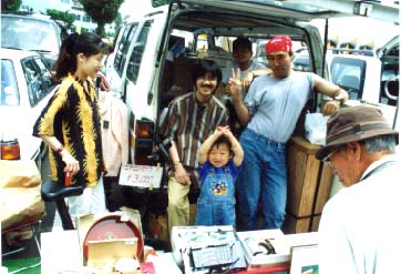 こんなふうに車のスぺーズに出店する。真ん中の子供は友人の子供。(念のため)