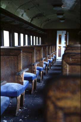 入り口から入ると中は以外としっかりしている。木の床に塗ってある油の匂いなんかがして往時をしのばせる。メーテルと鉄郎が乗っていそうです。 |