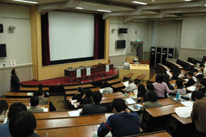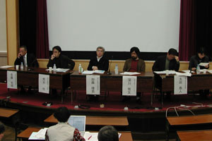 そして、最後の1時間は総合討議でパネリスト6人による討議と会場からも意見を募るという趣旨でした。が、シンポの定番でやはり時間が大幅に押し、討議の時間はあまりありませんでした。でもまあ、朝まで生ナントカ〜じゃなので限られた時間の中でこれはある程度やむを得ない事でしょう・・。