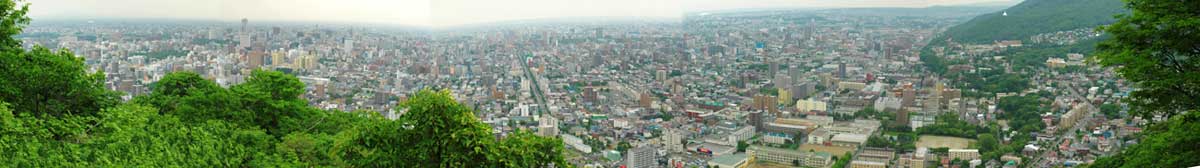 円山頂上から見た札幌。中央の目立つ通りは南9条通り。右に藻岩中腹の仏舎利塔がポチっと見える。